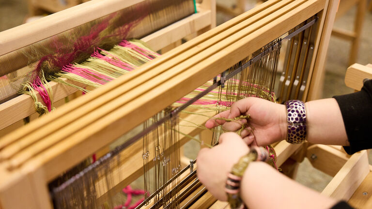 This course introduces floor loom hand weaving through the study of weave structures, woven image techniques, and fiber types. Students will explore both traditional and experimental approaches to material and technique, including double weaves, dyed warps, and hand-manipulated methods such as brocade and inlay. Over the course of the semester, students will produce finished weavings on 4-harness floor looms through in depth exploration and research. The course also examines the global histories of woven cloth through readings, presentations, and class discussions. Artists studied may include Diedrick Brackens, Lenore Tawney, and Gunta Stölzl, alongside writings by Anni Albers, T'ai Smith, and Dieter Hoffman-Axthelm. Students will learn to read and work from weaving draft patterns and will conduct independent research into artists and techniques of personal interest. Throughout, the course engages with the conceptual and material considerations of contemporary craft-based art. Students present finished and in-progress work in individual and group critiques throughout the semester.