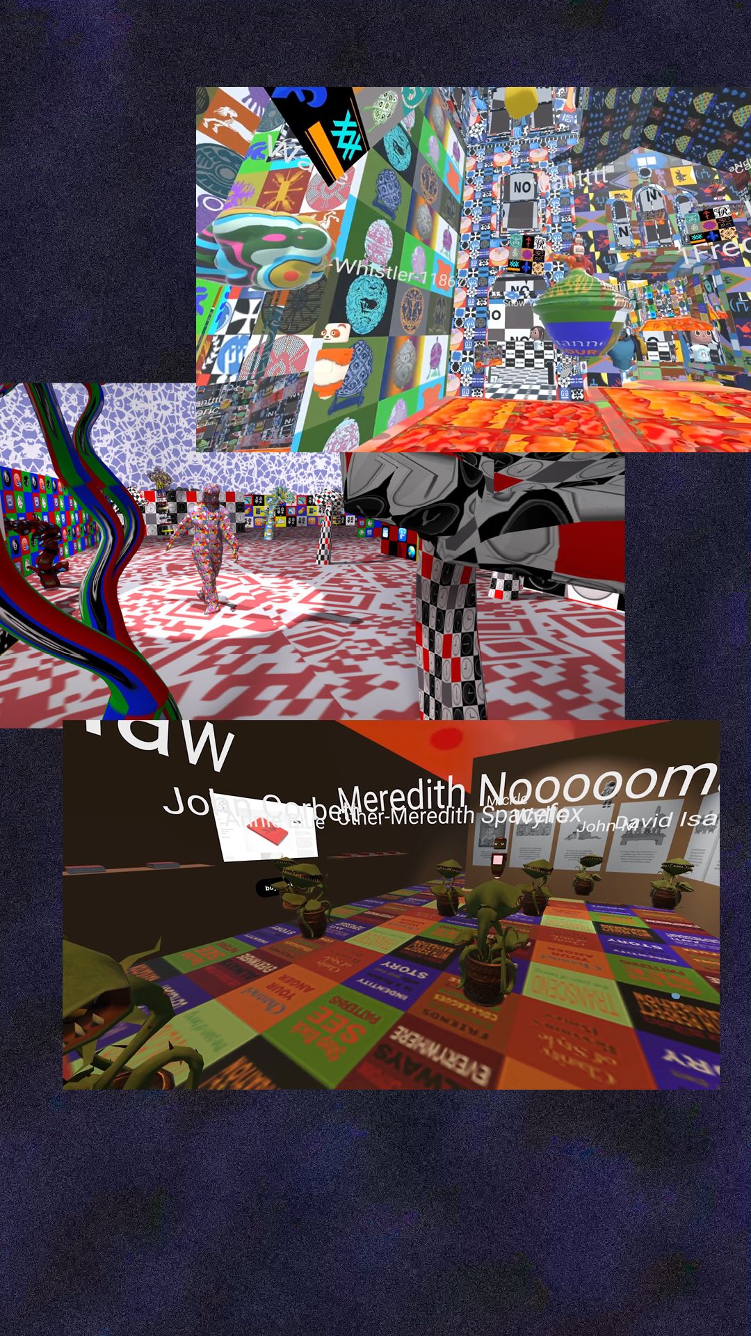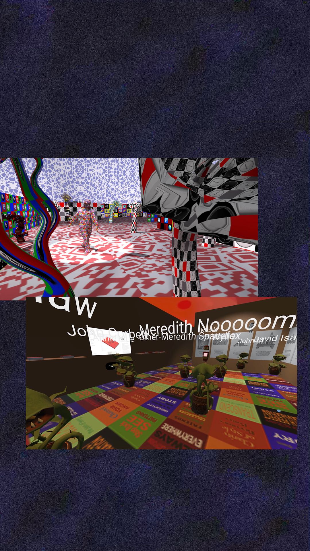 Animation includes clips from Alfredo Salazar-Caro, Dreams of the Jaguar's Daughter, chapter 1 trailer; Sasha Samochina's RPS 3D Viewer, credit: NASA/JPL-Caltech/ProtoSpace; Claudia Hart, Welcome to the Doll's House trailer, 2020; Claudia Hart, AliceUnchained XR, 2018; Jake Elliot, Tamas Kemenczy, and Ben Babbitt, Kentucky Route Zero