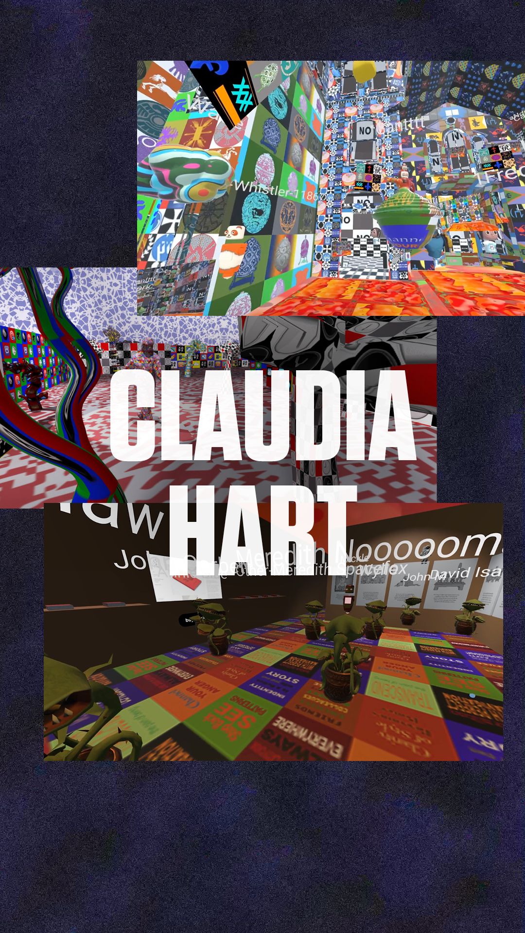 Above: Claudia Hart, still from AliceUnchained XR (walkthrough of Vive VR), 2018; still from Ludicy: A Series of Para Pandemic Liberations, 2021; still from Welcome to the Doll's House trailer, 2020