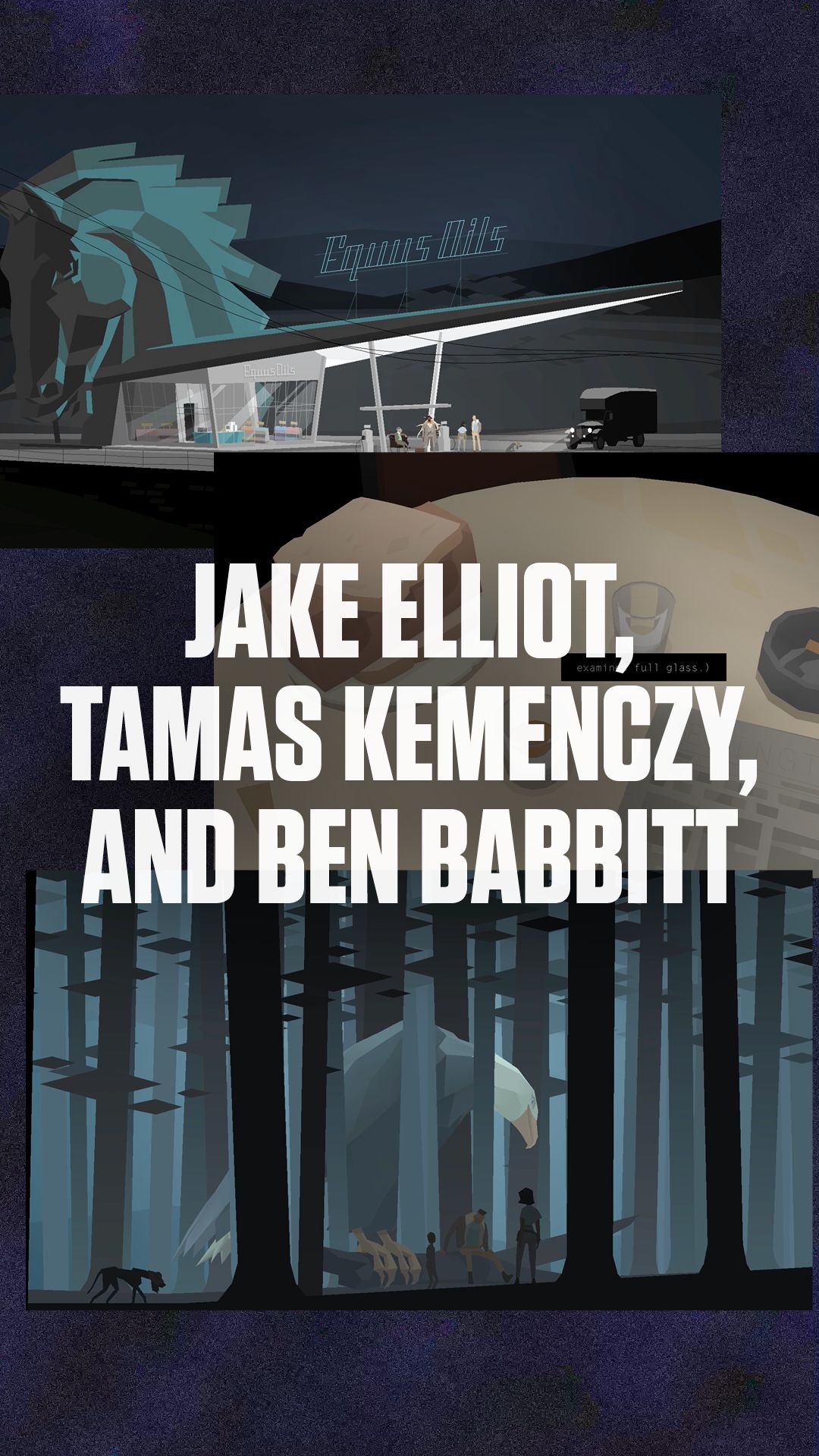 Above: Jake Elliot, Tamas Kemenczy, and Ben Babbitt (Cardboard Computer), still from Kentucky Route Zero; still from The Entertainment
