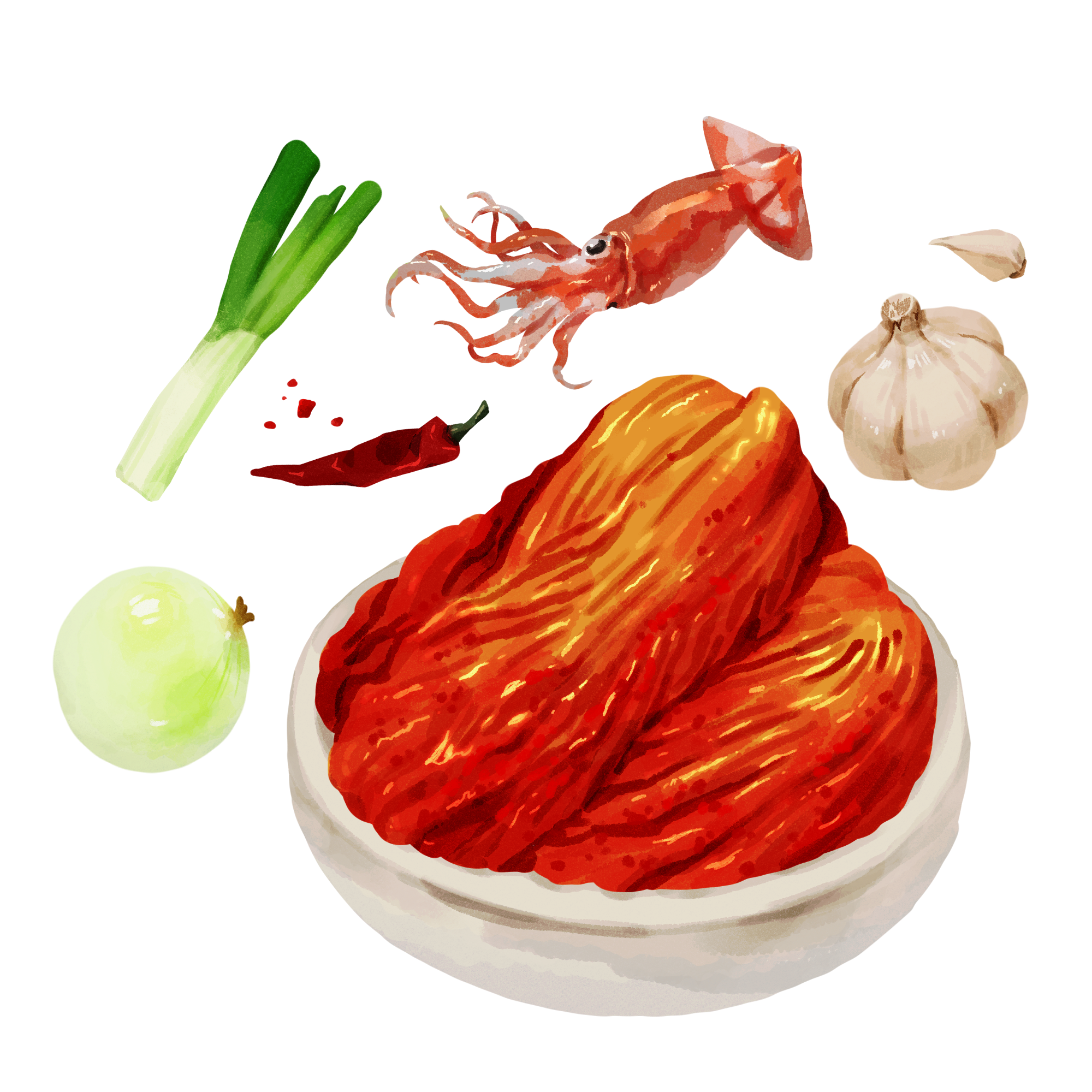 In the fall, gimjang (김장) is a Korean tradition where family members gather to make kimchi together. Like hundreds of kimchi—cut, wash, salt the cabbage, the whole shebang. Not many Korean families do this anymore. It’s sort of a dying tradition, but my family always makes kimchi together. The red pepper paste gets everywhere by the end of the day. It’s a huge mess but it tastes great. And each family has a secret ingredient they add that makes each family’s kimchi taste a little different. Our family’s secret is the squid—we put raw squid in and it adds a deep flavor. ■